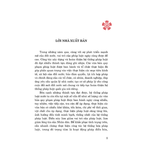 Cuốn sách Lý luận, thực tiễn về các mô hình pháp điển hóa điển hình trên thế giới và những kiến nghị đối với Việt Nam (Sách chuyên khảo) đã được xuất bản lần đầu vào tháng 6/2022 và được đông đảo bạn đọc đón nhận. Đáp ứng yêu cầu của bạn đọc, Nhà xuất bản tái bản, có chính sửa cuốn sách. Cuốn sách là tài liệu tham khảo có giá trị phục vụ các nhà nghiên cứu, các nhà hoạch định chính sách pháp luật, xây dựng pháp luật và bạn đọc có nhu cầu nghiên cứu, tìm hiểu về pháp điển hóa cũng như các mô hình pháp điển hóa điển hình trên thế giới và ở Việt Nam hiện nay.