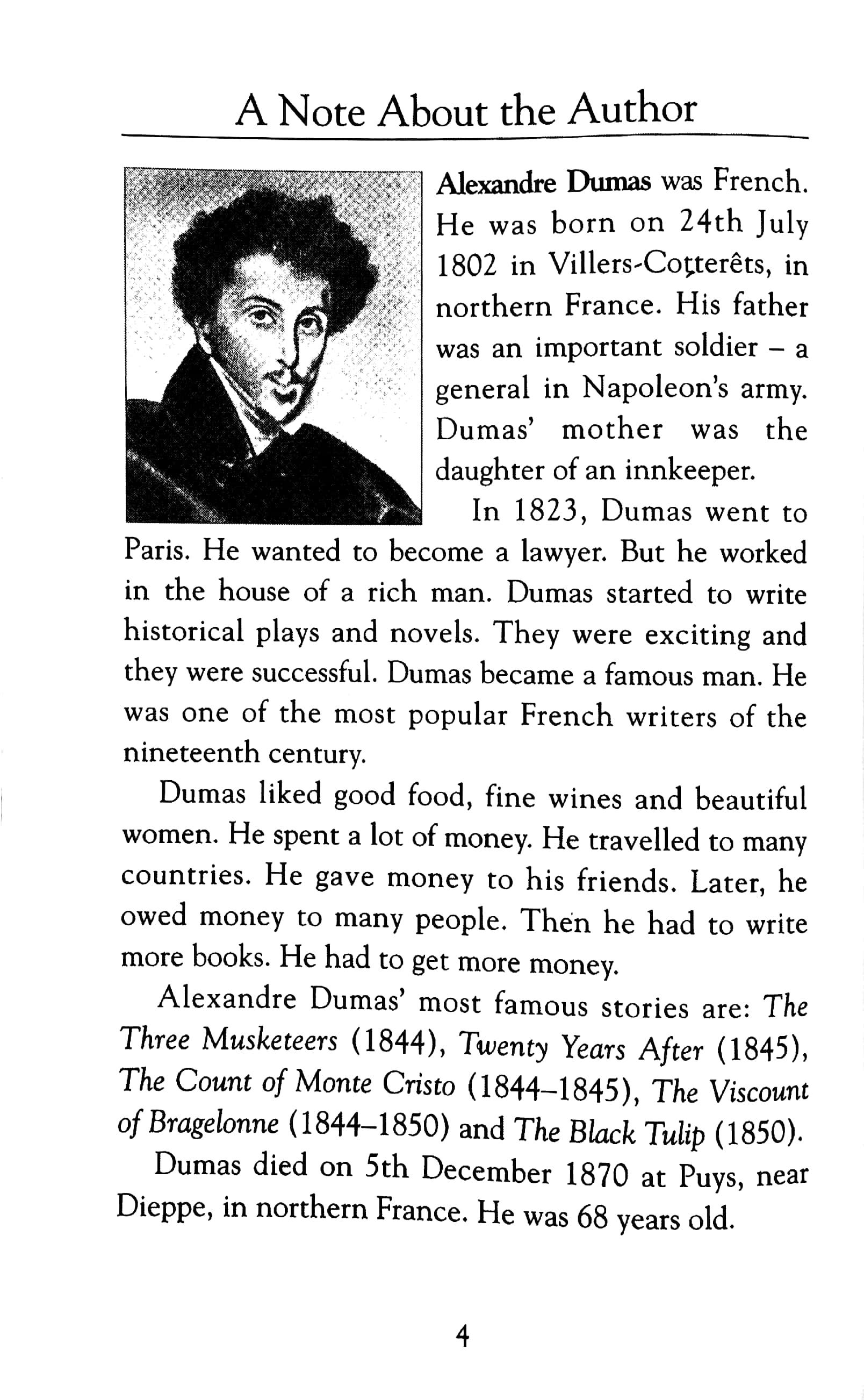 A romance set in Holland in 1672. Young Cornelius Van Baerle has found the secret of growing a black tulip, and he will soon claim the prize offered to the first person to produce black blooms. But Cornelius has a jealous neighbour, and in the tense political situation of that year, this man proves a dangerous enemy.