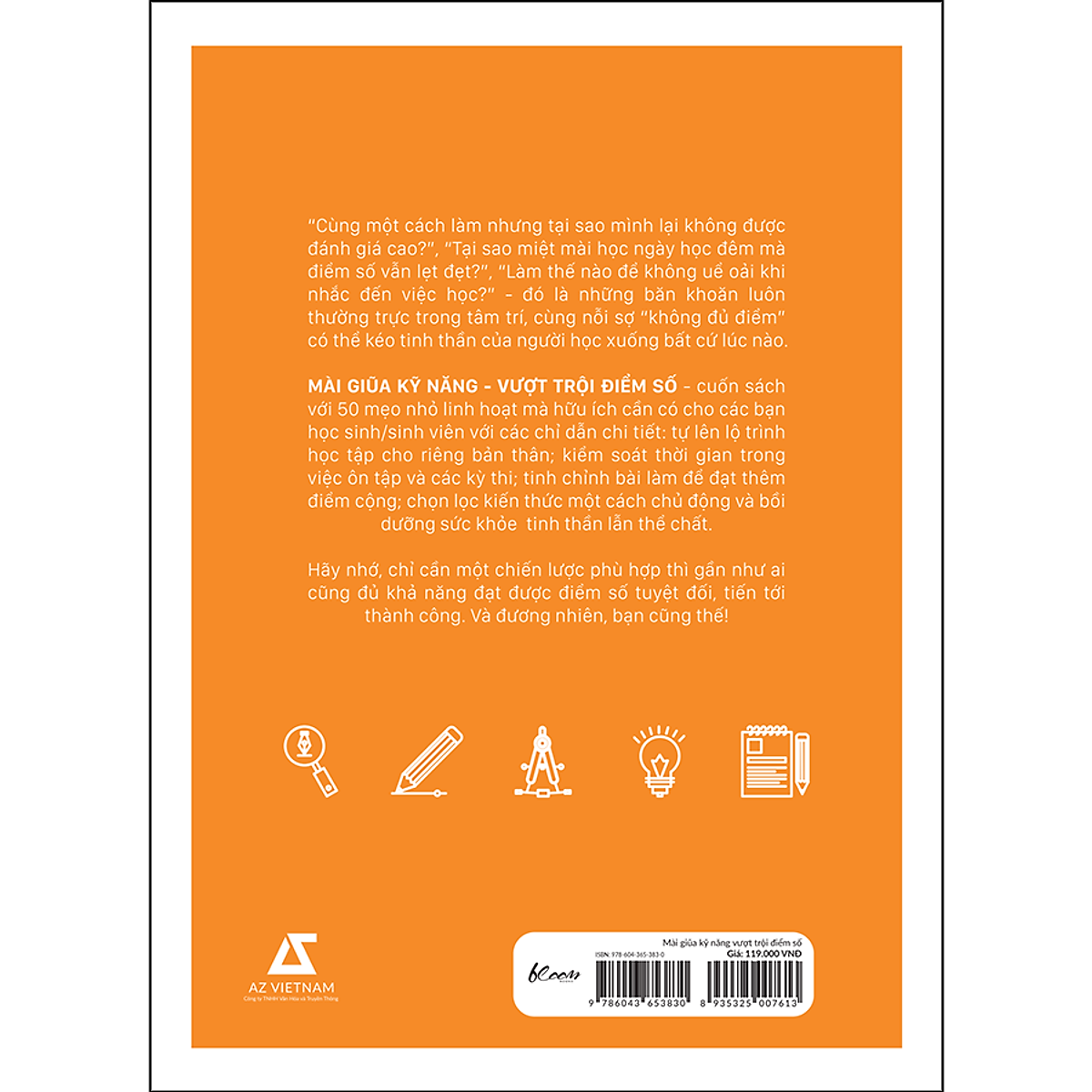 Mua tại Tiktok“Cùng một cách làm nhưng tại sao mình lại không được đánh giá cao?”, “Tại sao miệt mài học ngày học đêm mà điểm số vẫn lẹt đẹt?”, “Làm thế nào để không uể oải khi nhắc đến việc học?” - đó là những băn khoăn luôn thường trực trong tâm trí, cùng nỗi sợ “không đủ điểm” có thể kéo tinh thần của người học xuống bất cứ lúc nào. MÀI GIŨA KỸ NĂNG – VƯỢT TRỘI ĐIỂM SỐ với 50 mẹo nhỏ linh hoạt mà hữu ích cần có cho các bạn học sinh/sinh viên với các chỉ dẫn chi tiết: tự lên lộ trình học tập cho riêng bản thân; kiểm soát thời gian trong việc ôn tập và các kỳ thi; tinh chỉnh bài làm để đạt thêm điểm cộng; chọn lọc kiến thức một cách chủ động và bồi dưỡng sức khỏe tinh thần. Đây cũng là cuốn sách thứ 3 trong bộ Cẩm nang sinh viên, được viết bởi Stella Cottrell – chuyên gia giáo dục và hướng nghiệp người Anh, tác giả của Lộ trình bạn đi Tương lai bạn chọn và Tháo gỡ căng thẳng Mở lối tiềm năng – những cuốn sách hữu ích nổi tiếng với các bạn trẻ. Hãy “note” lại trong trí óc để nhớ kỹ hơn rằng, chỉ cần một chiến lược phù hợp thì gần như ai cũng đủ khả năng đạt được điểm số tuyệt đối, tiến tới thành công. Và đương nhiên, bạn cũng thế!