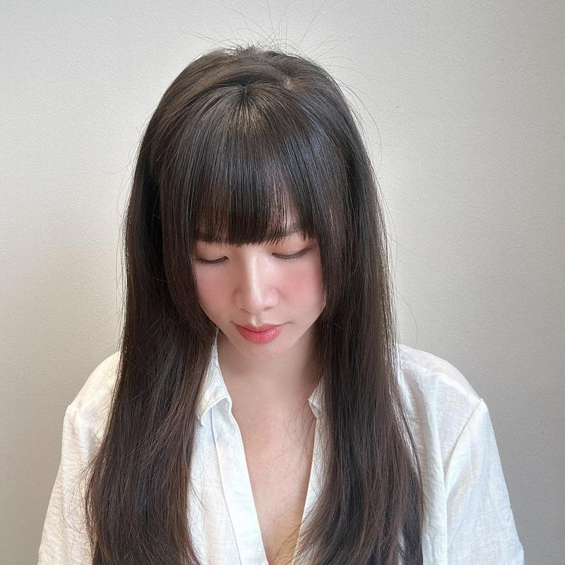 THÔNG TIN SẢN PHẨM:   Loại: Mái Hime mái dày   Chất liệu: Tóc th.ậ t 100% Uốn, Ép, Nhuộm đều được.   Màu sắc: Màu nâu trầm, Màu nâu socola, Màu nâu sáng, Màu