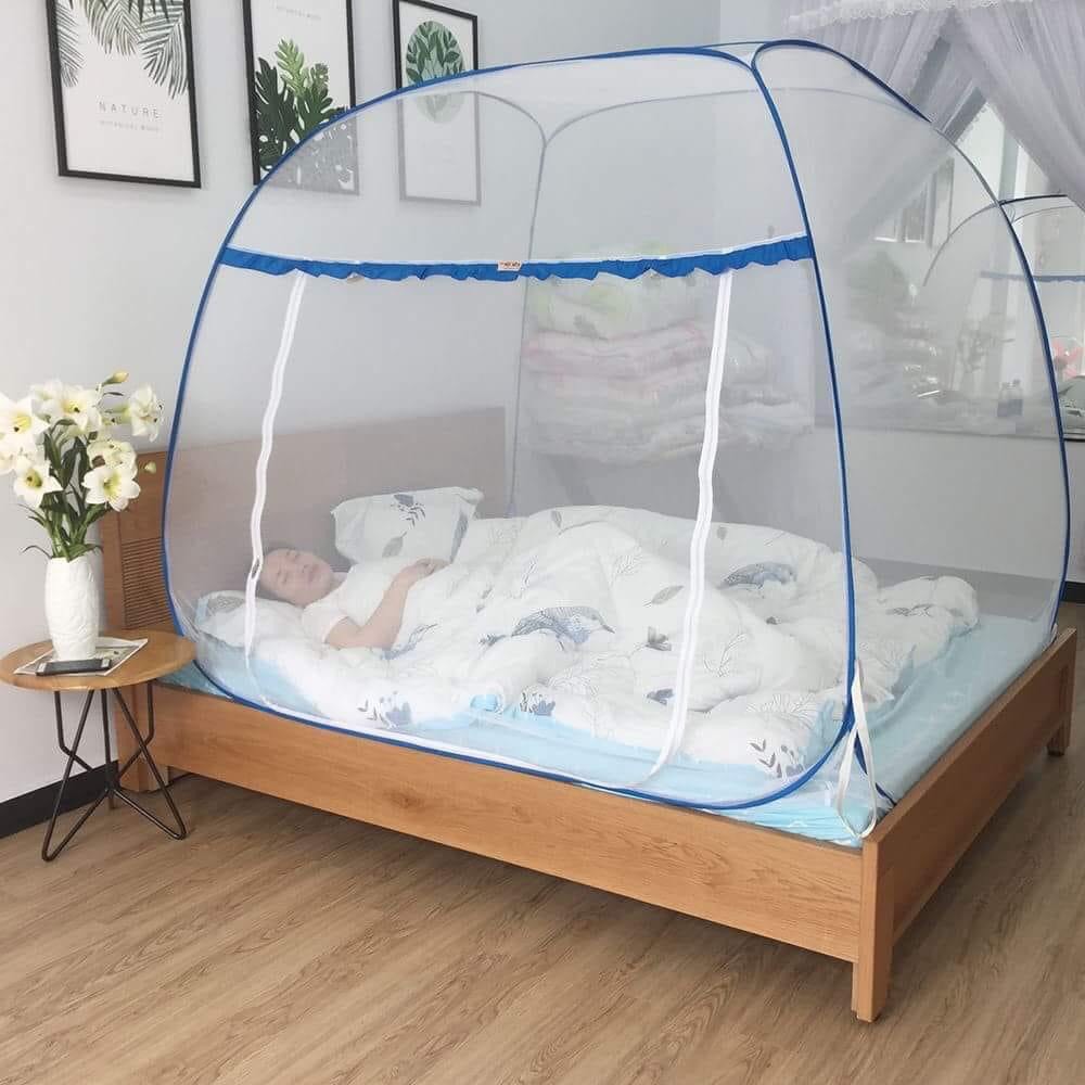 MÀN CHỤP , MÙNG CHỤP CAO CẤP MỘC MIÊN ĐỈNH CHÓP : - Dùng màn chụp đỉnh chóp cho không gian nhà nhỏ - dễ gấp , mắt lưới thưa hơn mà vẫn đảm đảm