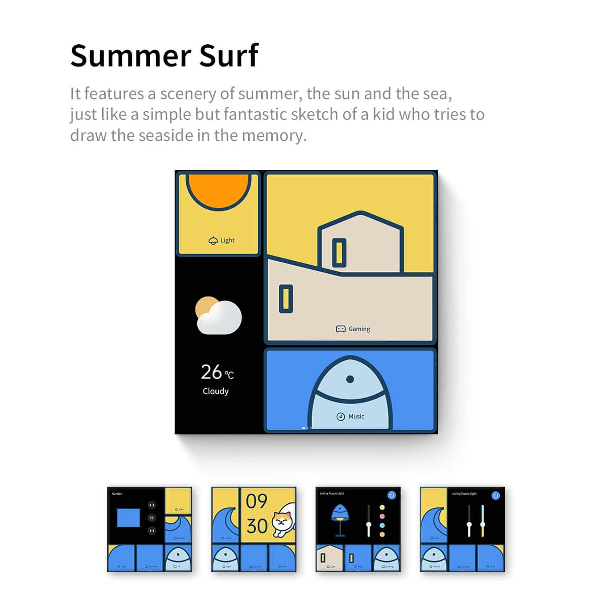 - Các thiết bị tương thích Apple HomeKit khác Thiết kế hiện đại phù hợp với nhiều không gian khác nhau Aqara Magic Switch S1E có thể thay đổi giao diện từ một trong 54 mẫu có thể tùy chỉnh. Các themes có thể tùy chỉnh theo từng trang để phù hợp với không gian và kiến trúc của căn nhà. Một số lưu ý khi sử dụng màn hình cảm ứng Aqara S1