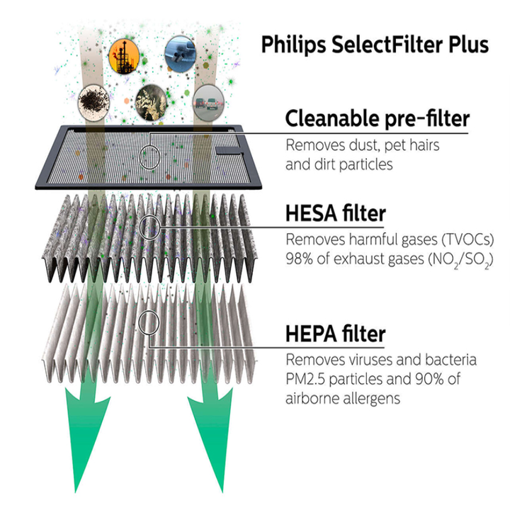 - Công nghệ HESAMax của Philips được chứng minh là vượt trội trong việc loại bỏ formaldehyde, toluen và TVOCs