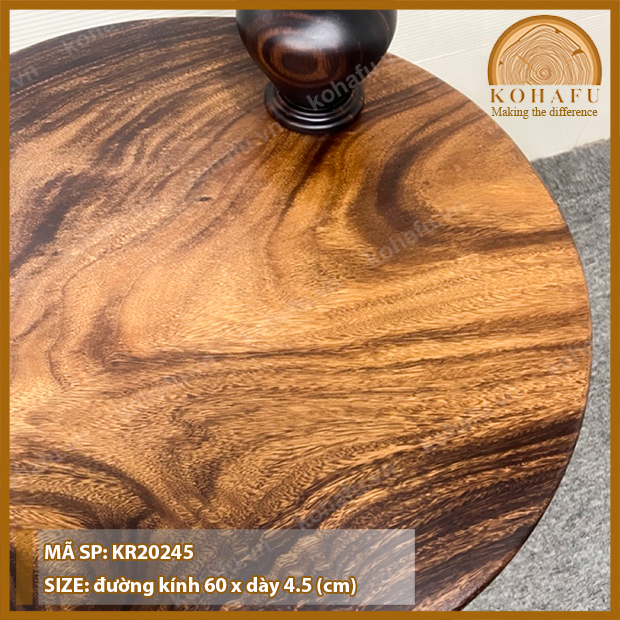Chất liệu: gỗ ME TÂY nguyên tấm nhập khẩu loại 1 Kích thước: - KR20243: đường kính 60 x dày 4.5 (cm) - KR20245: đường kính 60 x dày 4.5 (cm) - KR20246: đường kính
