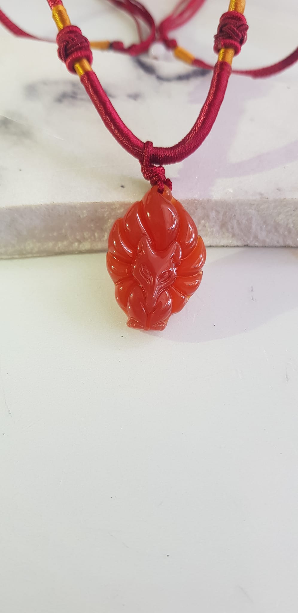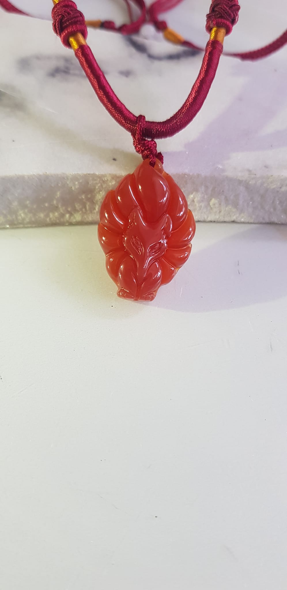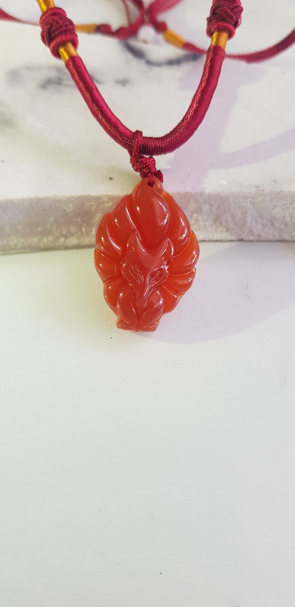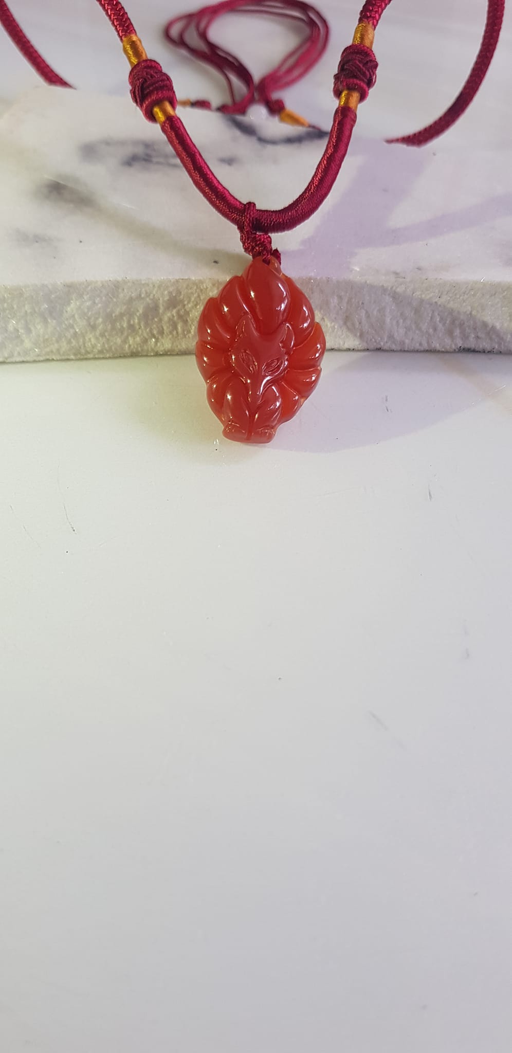 Mặt dây chuyền Hồ ly 9 đuôi hay chín đuôi đá mã não Đỏ tự nhiên tặng kèm dây đeo hợp mệnh Hỏa Thổ Size Cao 30mm x ngang 20mm x dầy 8mm Công dụng may mắn về mặt tình duyên, quyền lực, giúp nữ chủ nhân luôn xinh đẹp tài trí mang nhiều tài lộc đeo mặt hồ ly sẽ giúp các Anh Chị em quyến rũ hơn trong mắt người khách giới