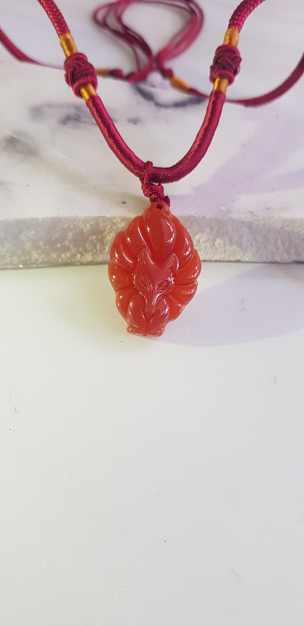 Mặt dây chuyền Hồ ly 9 đuôi hay chín đuôi đá mã não Hồng ngọc tự nhiên tặng kèm dây đeo hợp Hỏa Thổ