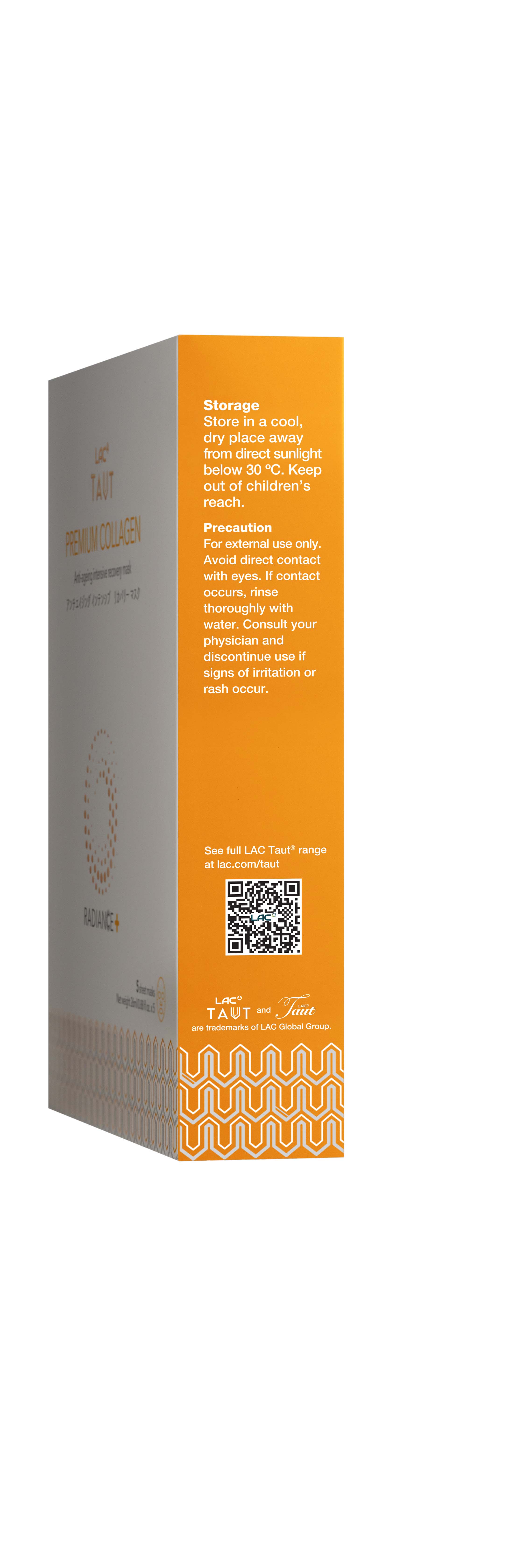 (*) Để đạt hiệu quả tốt nhất, nên sử dụng mặt nạ ít nhất 2 lần/ tuần, kết hợp với các sản phẩm khác trong dòng LAC Taut Premium Collagen