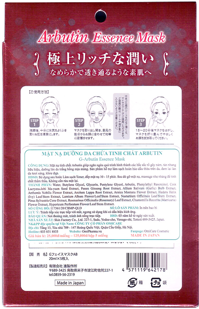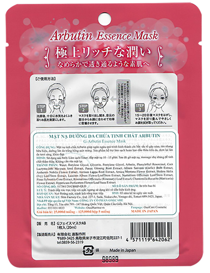 ✨Mặt nạ mờ thâm nám & làm sáng da G-Arbutin Essence Mask ( Hộp 5 miếng )