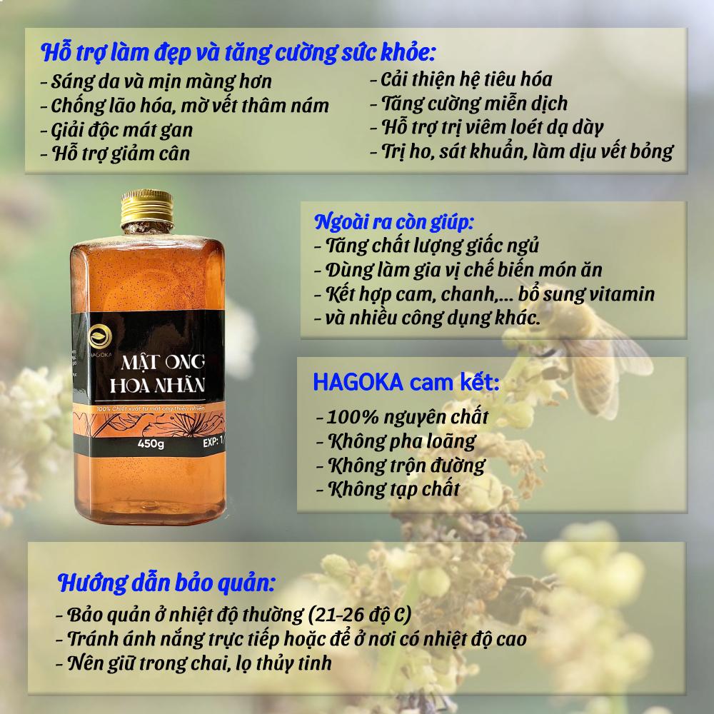 Mật ong hoa nhãn nguyên chất Hagoka do ong mật đi lấy phấn hoa về tổ tạo thành.