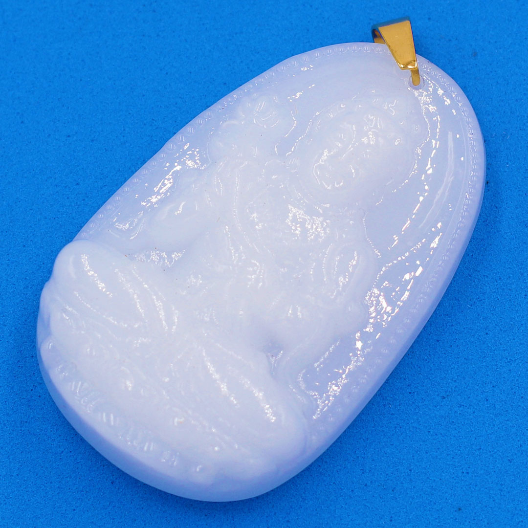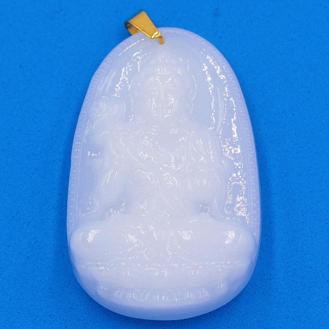 Mặt Phật Bà đứng Cẩm Thạch xanh trắng lí - Chất liệu: Ngọc Cẩm Thạch tự nhiên. - Màu sắc: Xanh lí phớt trắng - Kích thước: ngang 49mm, cao 23mm, dày 4mmx8mm - Mã kiểm định: 86691 - Tiêu chuẩn
