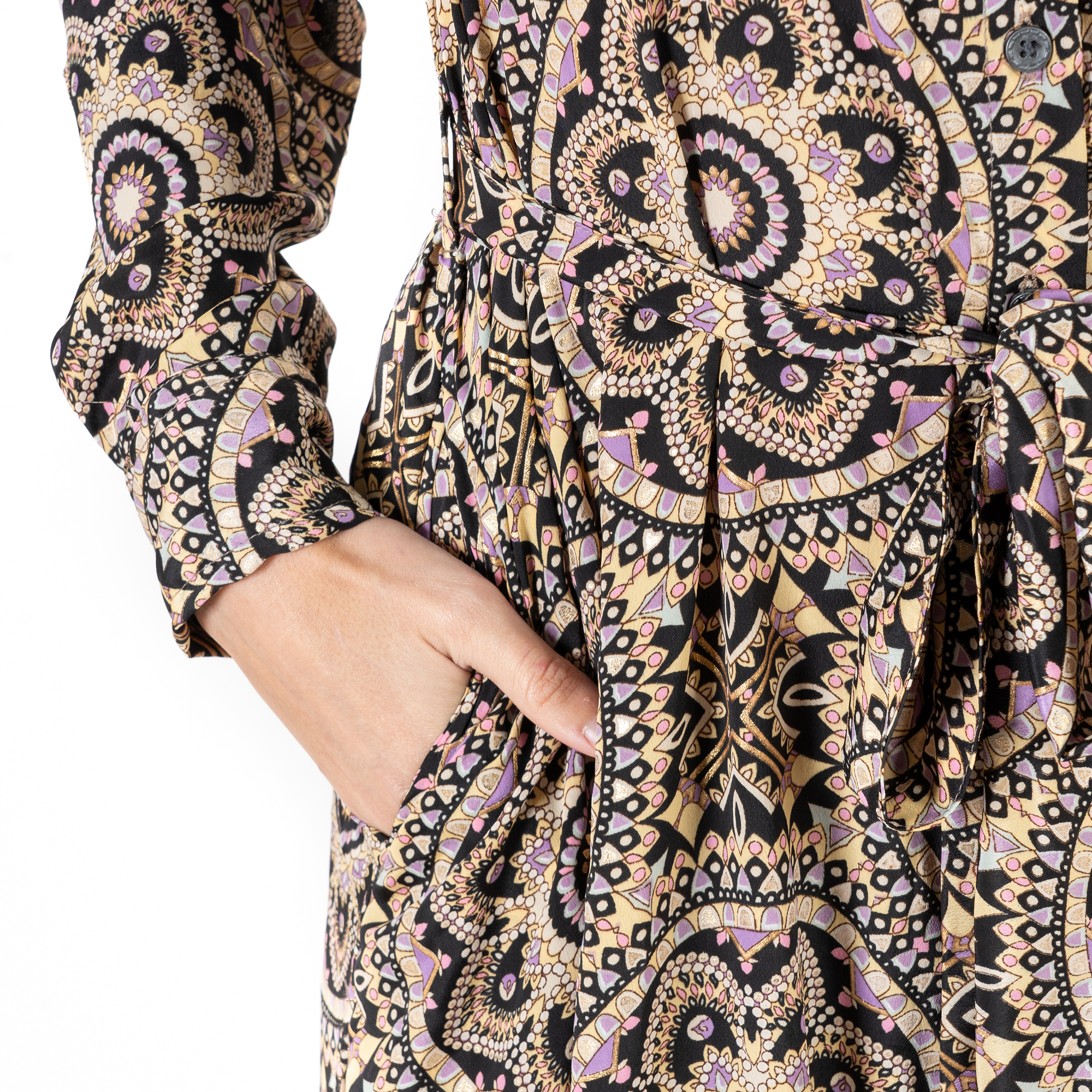 Maxi Sơ Mi Dài Tay Isla Bonita, chất lụa mềm mại, cao cấp. Có dây cột eo. Phom suông. Dài đầm 126cm (45x126) Phù hợp đi biển, dạo phố, công sở, hoặc dự tiệc. Hướng