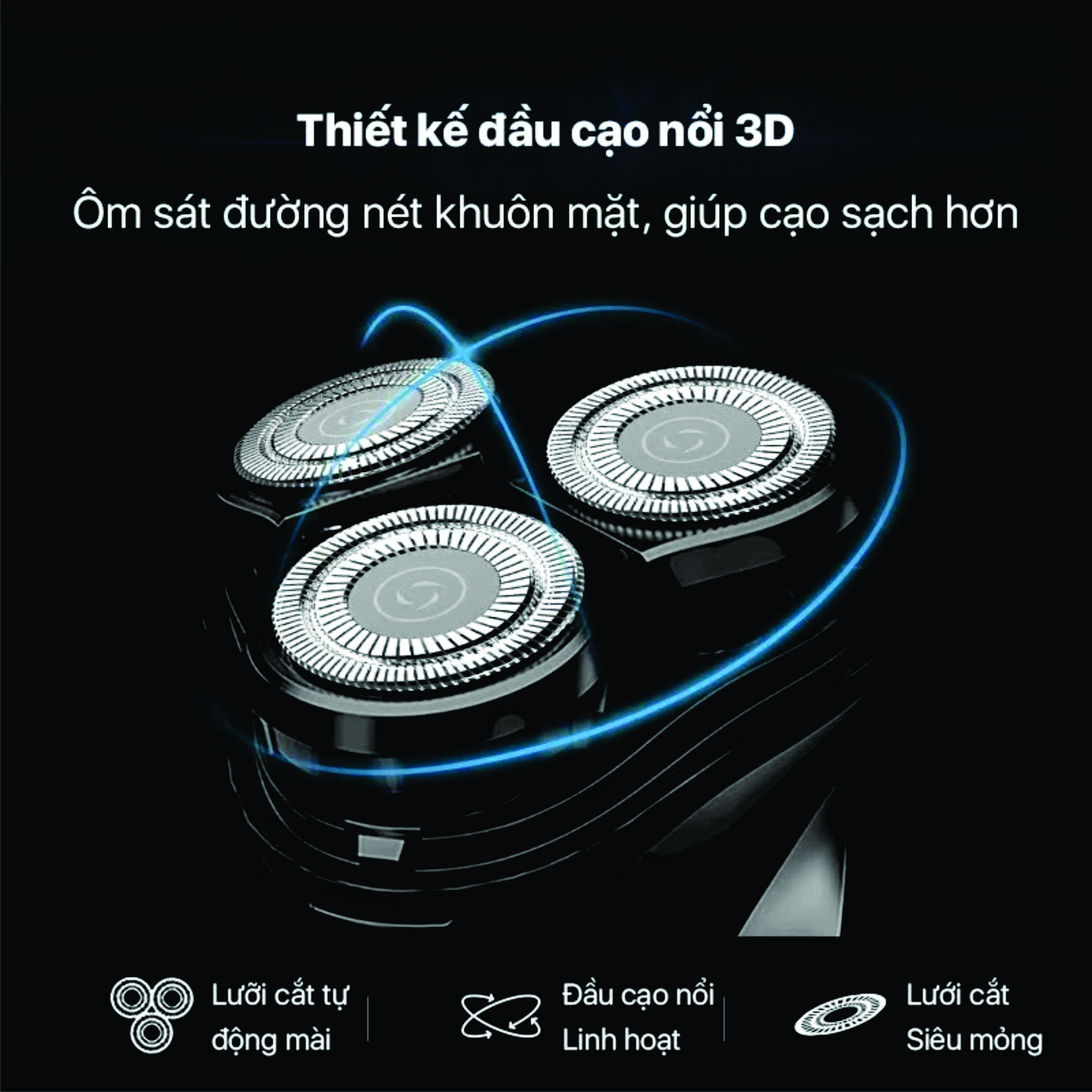 Máy cạo râu Enchen BlackStone 3 được trang bị 3 đầu cạo độc lập, mỗi đầu cắt được thiết kế với bề mặt nhẵn và có độ đàn hồi tốt thích ứng với mọi đường cong trên khuôn mặt, ở các vị trí khó tiếp cận như quanh môi, má, cằm và cổ,…Phần lưỡi dao cắt được gia công với vật liệu thép nhập khẩu Nhật Bản với độ chính xác cao. Đặc biệt phần lưỡi còn được thiết kế hai vòng giúp tăng gấp đôi diện tích tiếp xúc giữa lưới dao và mặt cho trải nghiệm cạo mượt mà và hiệu quả hơn.