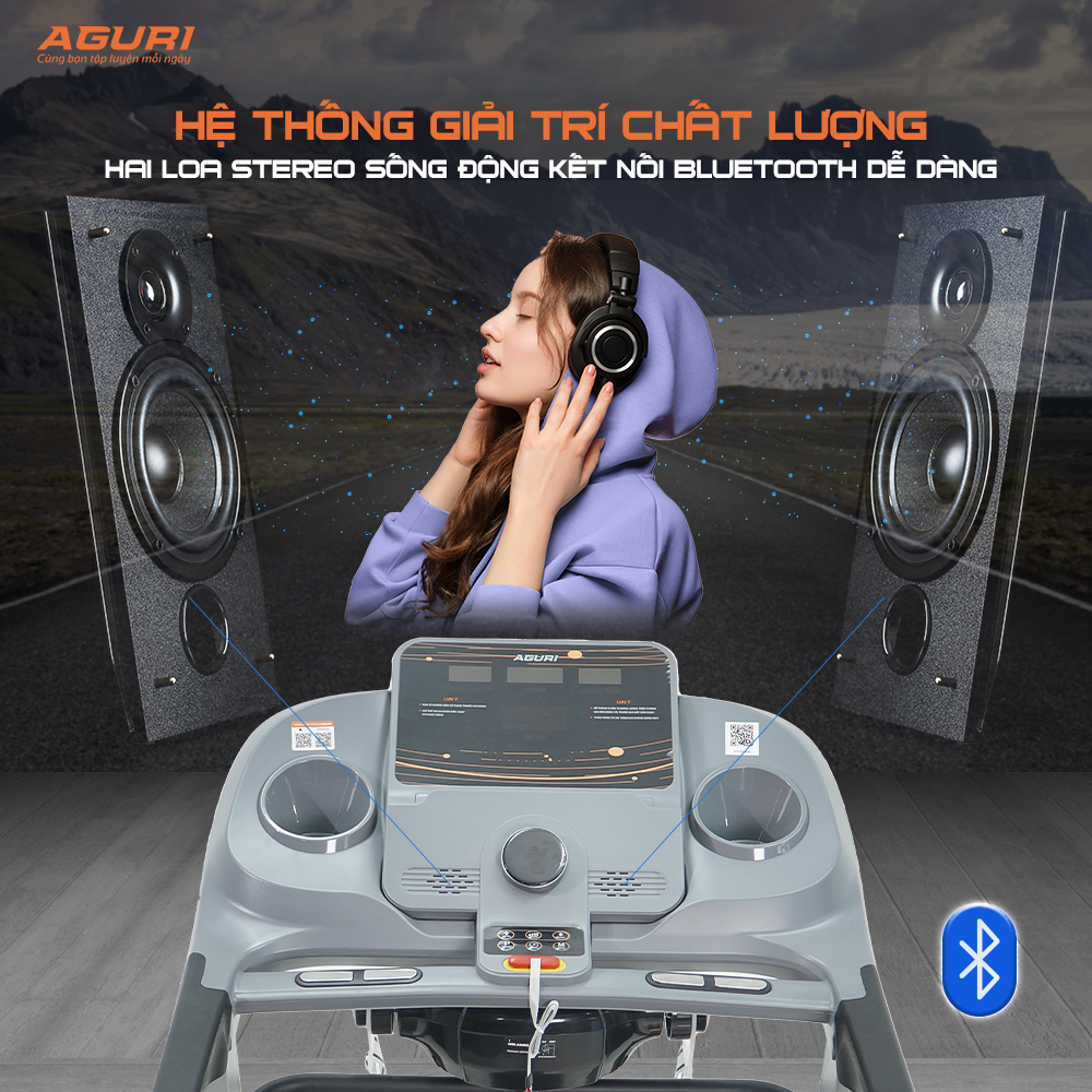 Máy chạy bộ AGURI AGT-115L *Thông tinmáy chạy bộ tại nhà AGURI AGT-115L - Motor DC công suất 3.5 HP - Màn hình LCD kích thước 5 inch hiển thị thời gian, quãng đường, vận