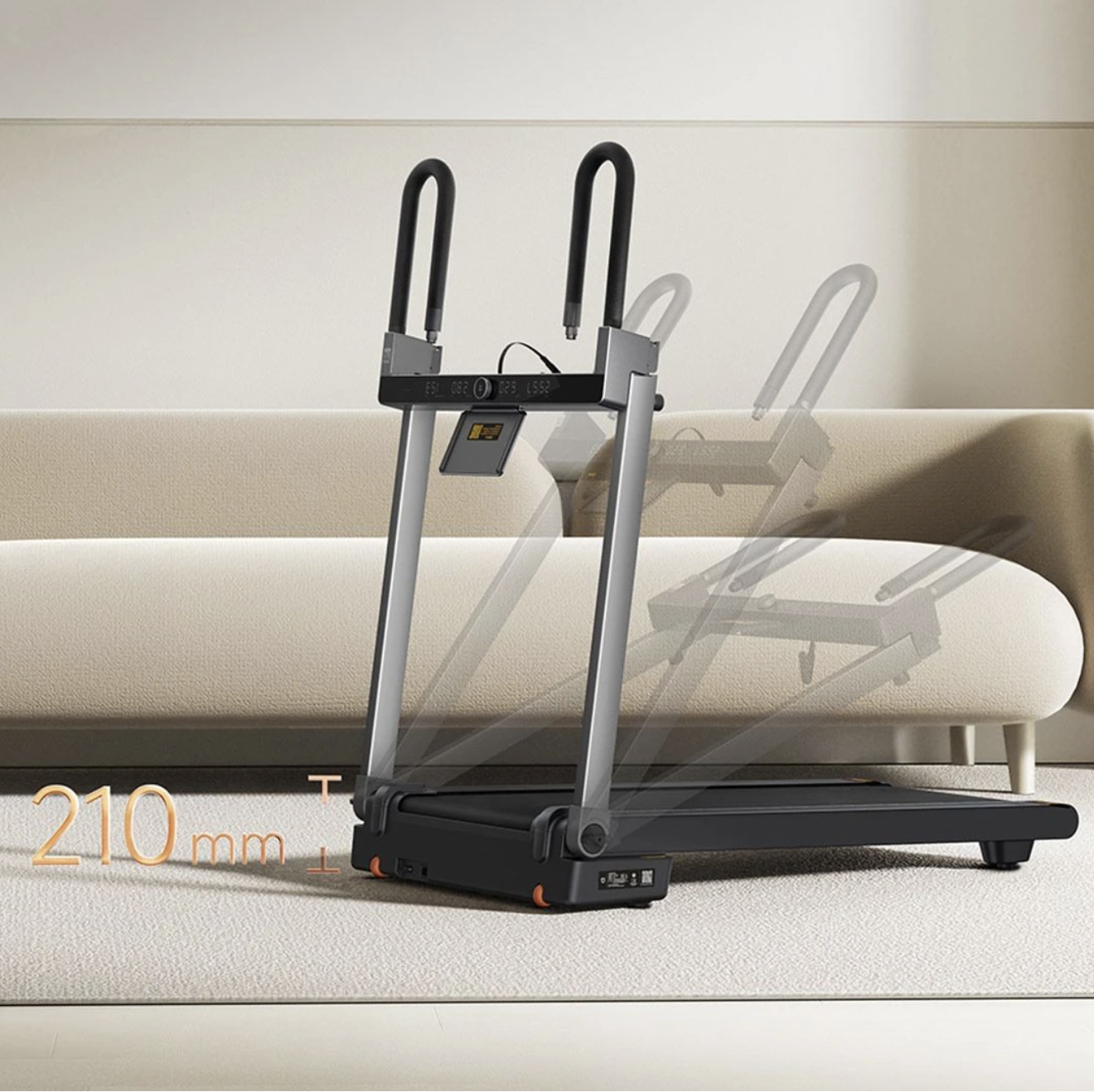 Máy chạy bộ này có trọng lượng khoảng 40kg, khoảng 210mm sau khi gấp lại và có thể mang tải trọng 220 catties. Máy sử dụng động cơ chổi than mạnh mẽ, tốc độ tối đa 15km/h và độ ồn khi chạy khoảng 65dB sẽ không ảnh hưởng đến các thành viên trong gia đình
