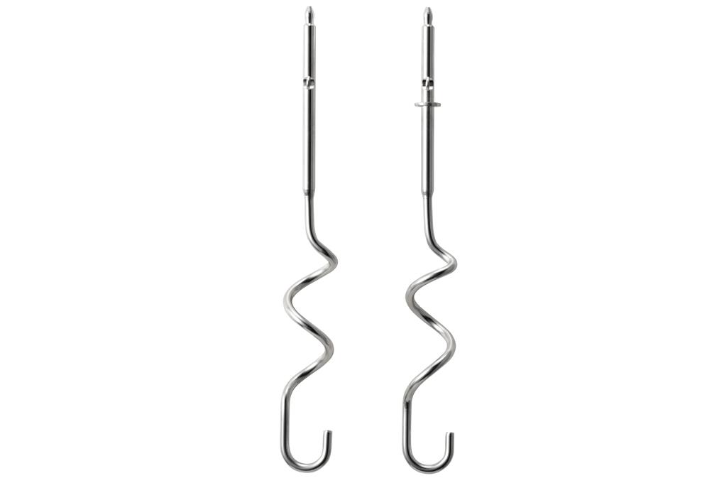 Máy đánh trứng có 2 que đánh trứng, 2 que đánh bột làm bằng chất liệu thép không gỉ sáng bóng, bền bỉ, an toàn cho sức khỏe