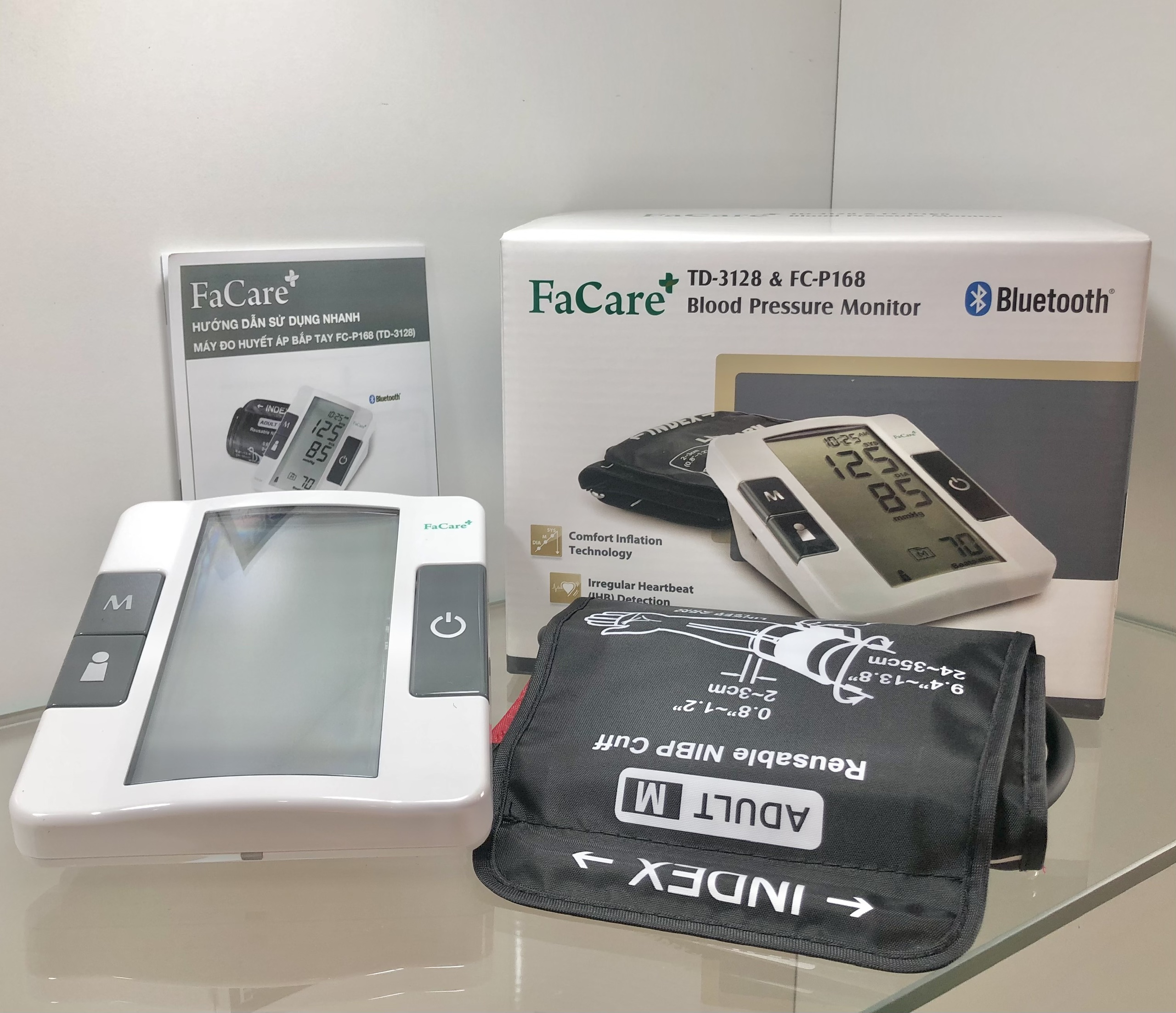 Máy đo huyết áp bắp tay tự động Model FC-P168 (TD-3128) sử dụng công nghệ kết nối BLUETOOTH thế hệ mới được tin dùng vì độ chính xác rất cao, dễ dàng sử dụng và có nhiều ưu điểm nổi trội, đặc biệt là khả năng kết nối với điện thoại thông minh, máy tính bảng, PC…bằng phần mềm FACARE để xem các báo cáo kết quả trên các thiết bị một cách thuận lợi. Sản phẩm được nhập khẩu trực tiếp tại TAIWAN với kết quả trả sau vài giây, nhanh chóng – chính xác, ngoài ra thiết bị đo huyết áp có thể sử dụng cho mọi đối tượng, kể các người có vấn đề về máu nhiễm mỡ hay xơ vữa động mạch.