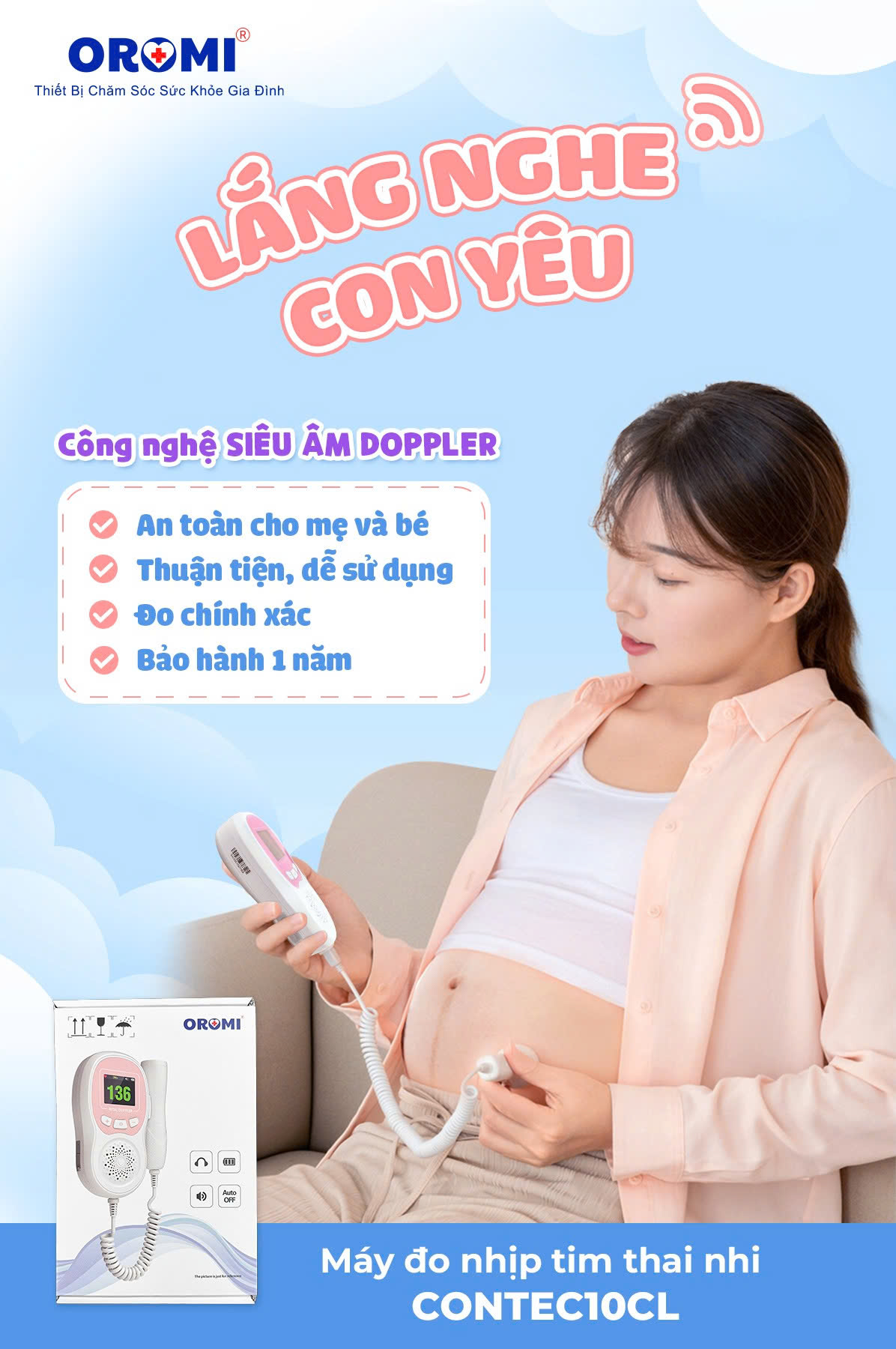 Hướng dẫn đo tim thai tại nhà đúng cách Máy nghe tim thai Oromi