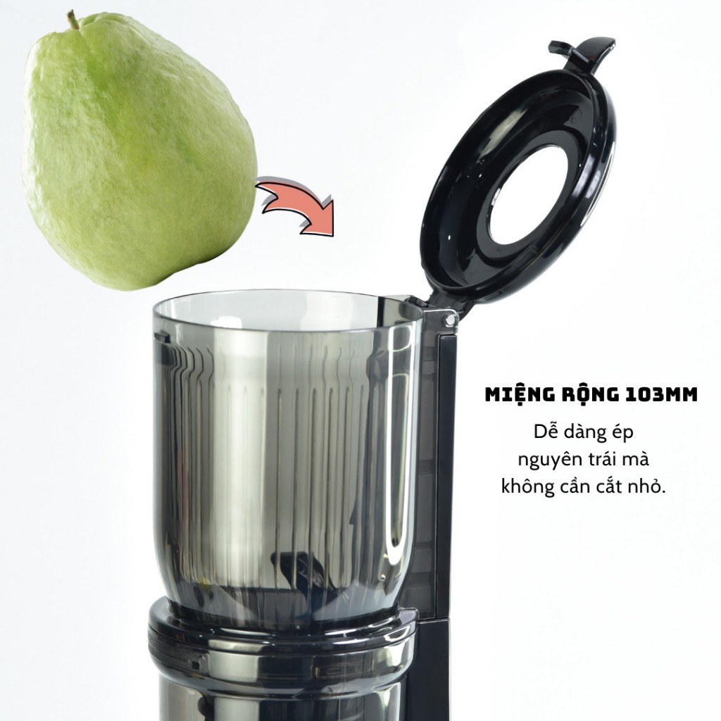 Ống tiếp nguyên liệu: 2 lưới lọc ép, miệng máy lớn đường kính 103mm