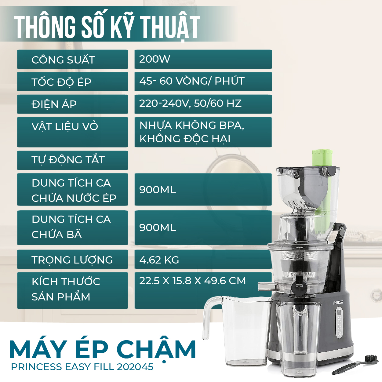 HDSD Máy ép chậm Princess Easy Fill 202045- Nhập khẩu Hà Lan- Ép kiệt bã đến 99%- Hàng chính hãng.