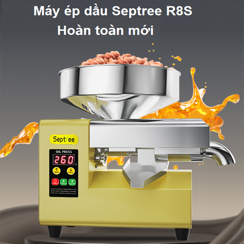 - Vấn đề sức khỏe hiện nay đang rơi vào tình trạng đáng báo động khi, các chủ cơ sở sản xuất, hộ kinh doanh dầu ăn chỉ chạy theo lợi nhuận mà bất chấp cung cấp ra thị trường các loại dầu ăn giả, kém chất lượng, gây tổn hại đến sức khỏe và tính mạng người tiêu dùng. Cách tốt nhất bảo vệ bản thân và mọi người trong gia đình đó chính là tự ép dầu thực vật ngay tại nhà. Giới thiệu máy ép dầu thực vật hoàn toàn mới, thế hệ thứ 4 Septree R8S Máy ép dầu thực vật hoàn toàn mới, thế hệ thứ 4 Septree R8S với tính năng ưu việt như: Xả dầu bên hông, momen xoắn 200nM, cảnh báo quá tải và tự động đảo chiều, cảm biến nhiệt tiên tiến....