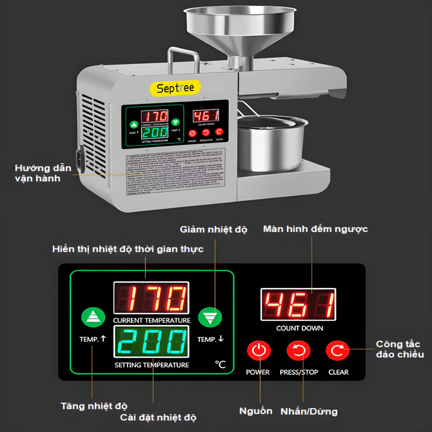 Hướng dẫn sử dụng máy ép dầu thực vật Nóng và Lạnh, dùng trong gia đình Septree Z5