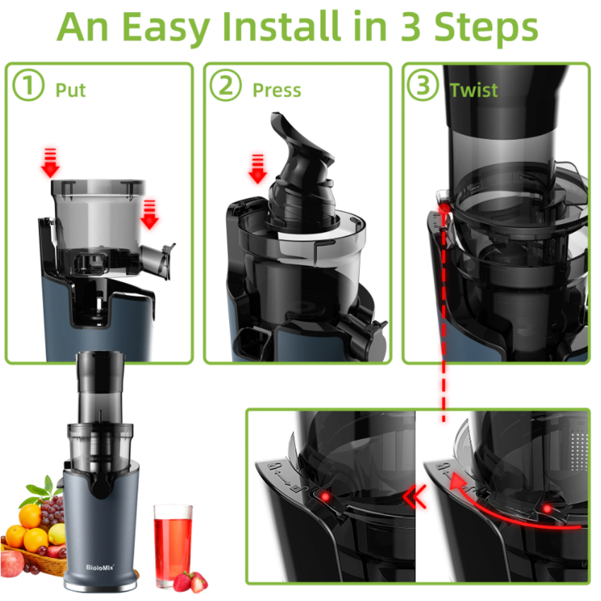 - Mỗi bộ phận riêng biệt của máy ép trái cây chậm đều thân thiện với máy rửa chén để làm sạch nhanh chóng. Khóa an toàn một chạm cho phép bạn tháo rời các bộ phận trong vài giây và rửa sạch trực tiếp.