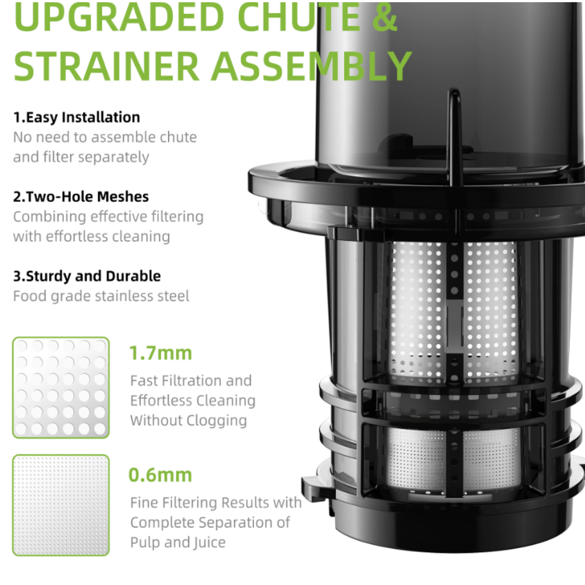 - Mỗi bộ phận riêng biệt của máy ép trái cây chậm đều thân thiện với máy rửa chén để làm sạch nhanh chóng. Khóa an toàn một chạm cho phép bạn tháo rời các bộ phận trong vài giây và rửa sạch trực tiếp.