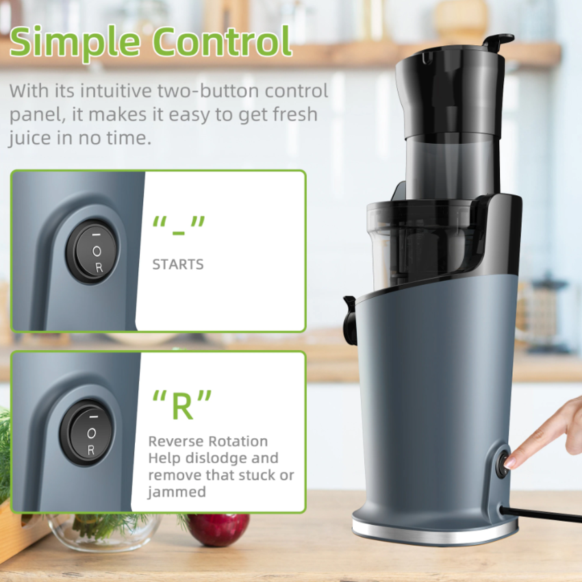 Ép kiệt hơn, giàu Vitamin và nhiều hương vị hơn! Đường kính khoang ép lớn lên đến 130mm, giúp ép nguyên quả dễ dàng mà không cần cắt nhỏ. Tốc độ quay chậm chỉ 40
