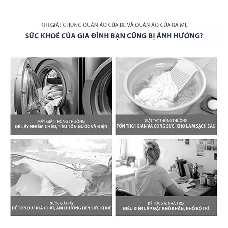 - Sản phẩm phù hợp với: Gia đình có em bé cần giặt riêng đồ của baby rất tiện lợi, người trẻ tuổi độc thân, người già và những nhu cầu cần giặt thường xuyên số lượng đồ không nhiều: