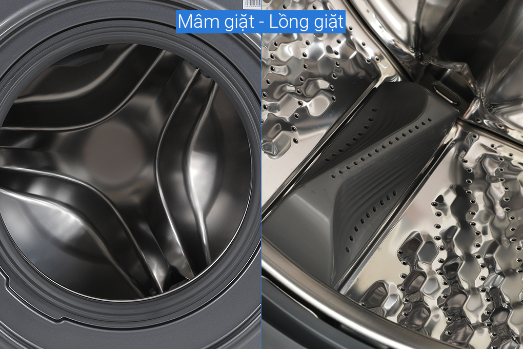 - Lồng giặt chất liệu thép không gỉ hạn chế rỉ sét, bám bẩn, làm sạch thuận tiện. Với chiều rộng 535 mm, lồng giặt cho phép bạn giặt được nhiều quần áo, giặt sạch và giảm nhăn hiệu quả. giặt sạch hơn, giảm nhăn trên đồ giặt. Tương thích với lồng giặt 535mm là cửa máy kích cỡ 365 mm giúp bạn đặt đồ vào hay lấy đồ ra gọn gàng, nhanh chóng hơn.