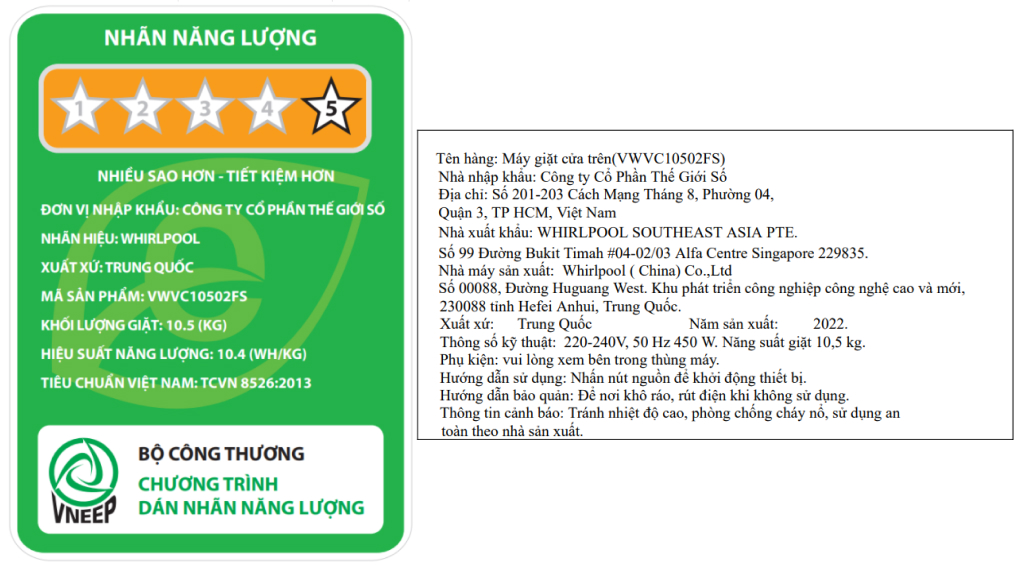 - Kiểu động cơ: sử dụng động cơ truyền động gián tiếp (dây Curoa) đơn giản, dễ bảo dưỡng, thay thế. - Máy giặt được cấp tem năng lượng chuẩn 5 sao: hiệu suất sử dụng điện là 10.4 Wh/kg cho khả năng tiết kiệm điện hiệu quả. *Hình ảnh chỉ mang tính chất minh họa Tiện ích - Khóa trẻ em: khóa nắp và các phím chức năng trên bảng điều khiển, phòng tránh các tác động vô tình từ trẻ nhỏ làm thay đổi chế độ giặt đã cài đặt và các nguy hiểm phát sinh khác. - Vệ sinh lồng giặt: sử dụng chức năng này để làm sạch lồng giặt, loại bỏ cặn bẩn, cặn bột giặt còn bám dính trong lồng giặt, tránh gây mùi, vi khuẩn phát triển và đảm bảo vệ sinh cho lần giặt sau.