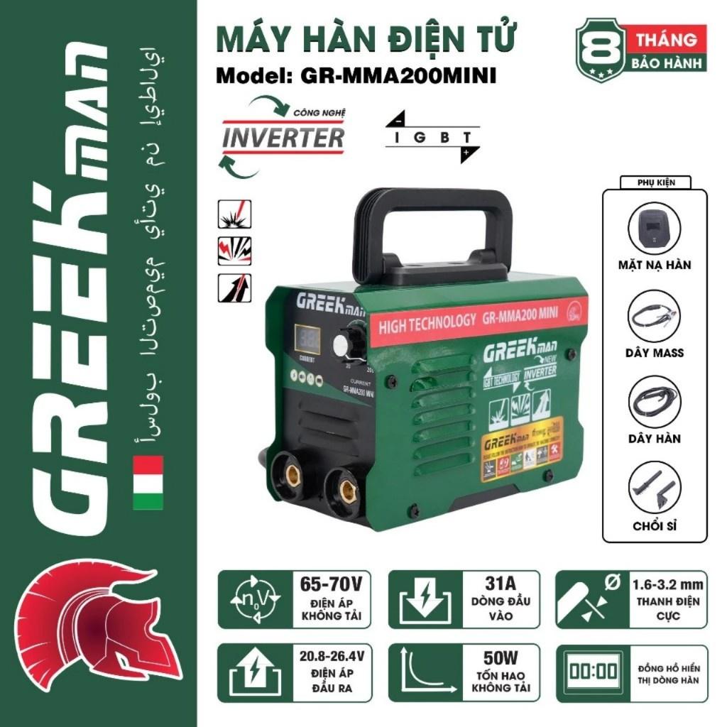 Máy hàn điện tử mini GREEK MAN MMA200 là dòng máy hàn mini chuyên dụng trong thi công hàn xì các công trình vừa và nhỏ,sửa chữa gia đì