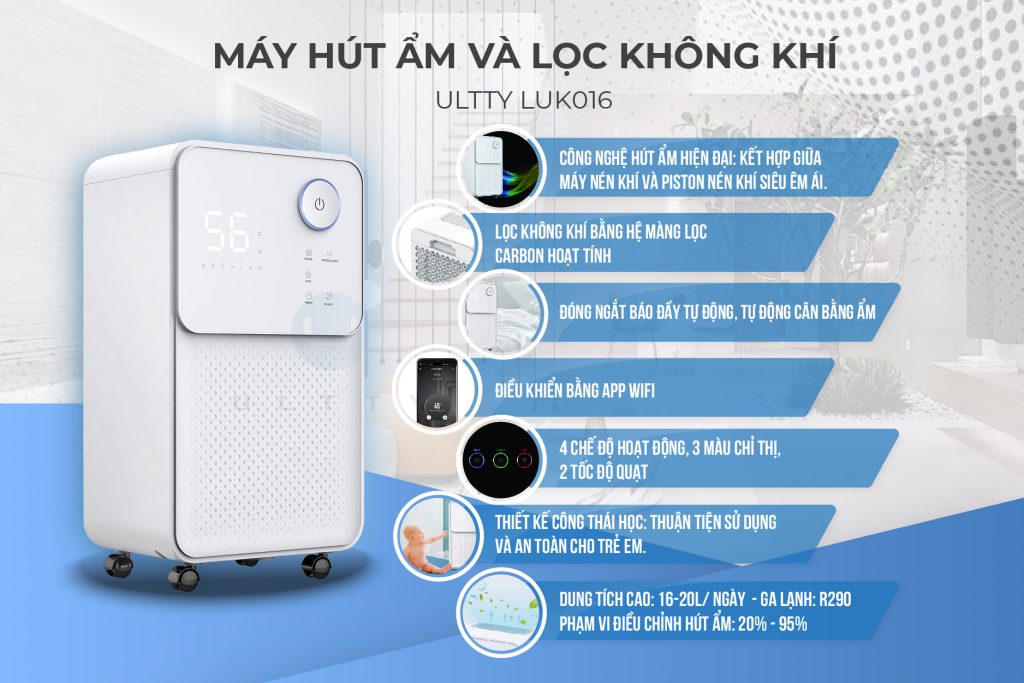 Máy hút ẩm và lọc không khí Ultty Luk016 là phiên bản mới được nâng cấp từ Ultty Luk012, giá tiền không đổi nhưng được trang bị thêm nhiều tính năng vượt trội MÁY HÚT