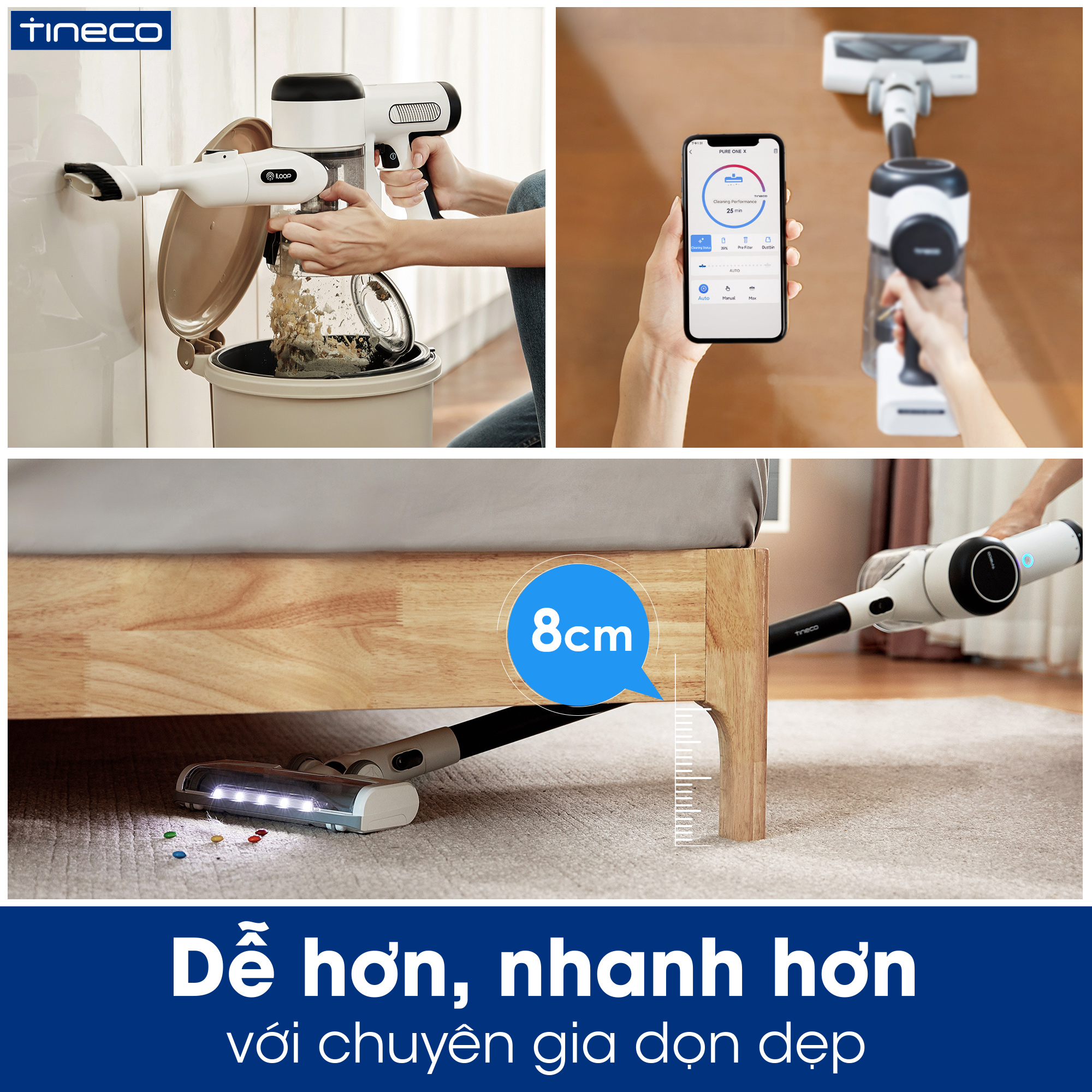 Pure One X dễ dàng chuyển đổi thành máy hút cầm tay để làm sạch sàn nhà linh hoạt với các phụ kiện đi kèm để tiếp cận các góc, cầu thang, kẽ hở và nội thất ô tô. Bàn chải điện mini đi kèm có thể lấy lông thú cưng khỏi vải bọc và giường một cách hiệu quả. Được thiết kế để siêu yên tĩnh, bạn có thể sử dụng Pure One X xung quanh vật nuôi và trẻ em mà ít bị quấy rầy. Kết nối Pure One X với ứng dụng Tineco Life để nhận theo dõi hiệu suất thời gian thực, báo cáo vệ sinh, nhắc nhở bảo trì,