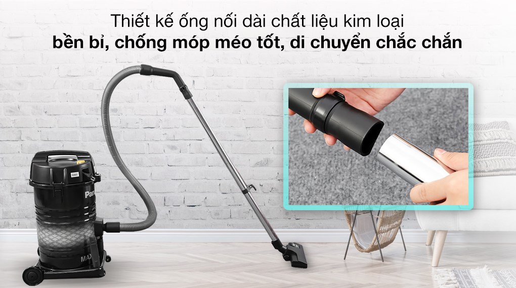 Máy hút bụi Panasonic với thiết kế công nghiệp, kiểu dáng chắc chắn, mạnh mẽ, có với bánh xe tiện di chuyển nhẹ nhàng Công suất hoạt động 2300 W cho lực hút mạnh mẽ, sử dụng hiệu quả cho các khu vực diện tích rộng như văn phòng, nhà xưởng, bệnh viện, Đầu hút 2 bước giúp vệ sinh hiệu quả ở mọi ngóc ngách, thuận tiện với các đầu hút khe và màn bọc đi kèm Thiết kế ống nối dài chất liệu kim loại bền chắc, chống móp méo tốt, duy trì lực hút ổn định và di chuyển chắc chắn hơn. Máy hút bụi công nghiệp có thể hút hiệu quả và an toàn cả bụi khô và bụi ướt, vệ sinh triệt để. Dung tích hộp chứa bụi lớn tới 21 lít, hút bụi liên tục khắp không gian rộng mà không tốn thời gian đổ bụi, vệ sinh hộp chứa Máy hút bụi với dây điện dài 8m, tự động rút gọn tiện lợi cho việc bảo quản Với chiều dài dây điện 8m cho phép di chuyển xa hơn để làm sạch mà không quá bất tiện, gọn gàng và thuận tiện trong việc cất giữ. Máy dùng bộ lọc Hepa kháng khuẩn lọc sạch vi khuẩn, bụi bẩn, các chất gây mùi và các tác nhân dị ứng trong không khí… mang lại không gian sống trong lành Máy hút bụi công nghiệp Panasonic MC-YL637SN49 2300 W sản phẩm công nghiệp phục vụ hiệu quả, bền tốt, hút bụi làm sạch tốt khu vực rộng mà không cần tốn nhiều công sức.