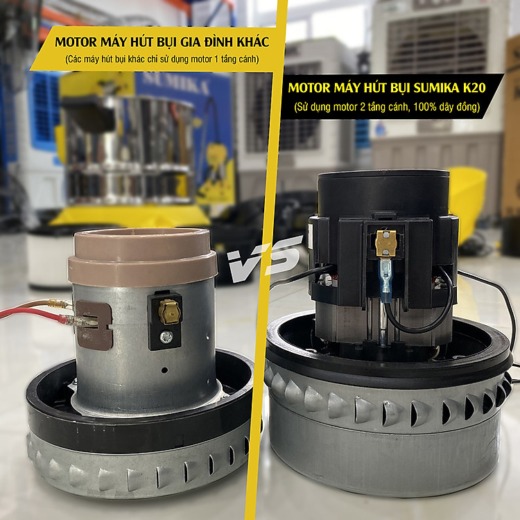 - Máy hút bụi K20 với động cơ motor Ametek của Mỹ và tầng lọc bụi HEPA sẽ đem lại cho bạn hiệu quả hút bụi và làm sạch tốt nhất. Với công suất và dung tích lớn như vậy, bạn có thể hoàn toàn yên tâm trang bị Sumika K20 cho các nhà xưởng không quá lớn, cửa hàng hay khu văn phòng lớn mà không lo máy không có đủ công suất hoạt động. Đa chức năng làm sạch