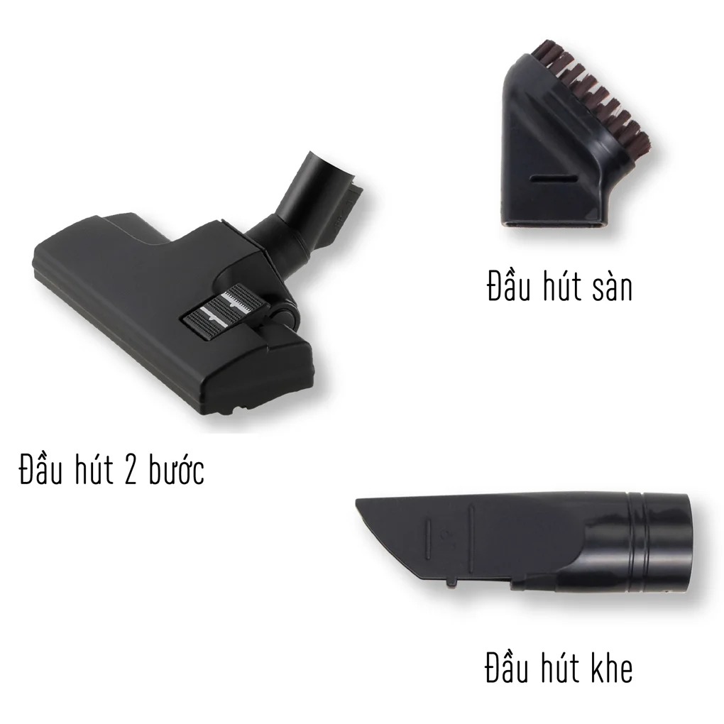- Tiện lợi trong việc vệ sinh nhiều khu vực khác nhau với đầu hút chuyên biệt, có 3 loại đầu hút bao gồm: