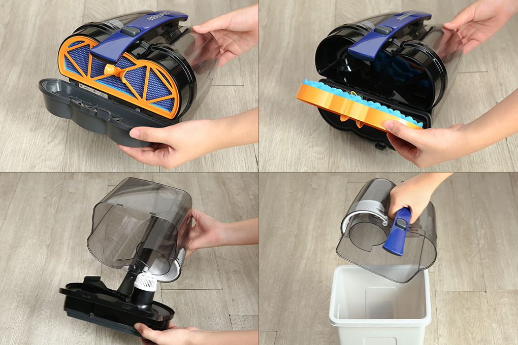 Công nghệ hút bụi lốc xoáy hiện đại không túi chứa bụi Đặc biệt thiết thực nhờ thiết kế nhỏ gọn Dễ dàng đổ sạch hộp chứa bụi chỉ bằng một nút nhấn Xử lý