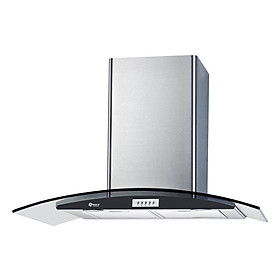 Kiểu máy kính gắn tường - mặt kính cong Chất liệu Inox - kính Màn hình LCD Điều khiển bằng cảm ứng - hẹn giờ tắt Khử mùi bằng than hoạt tính, ống thoát Ø150