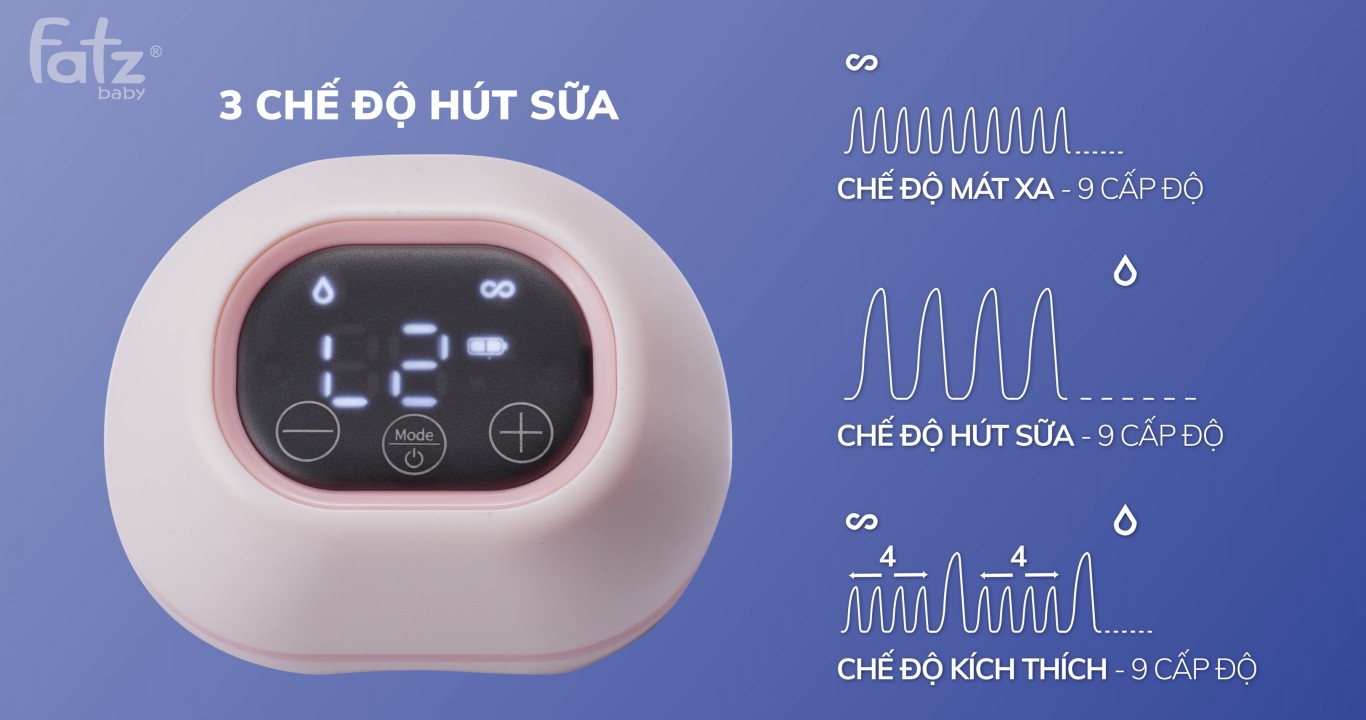 Ở chế độ kích thích, máy có 9 cấp độ để lựa chọn. Ở mỗi cấp độ, máy áp dụng năm lần hút nhẹ liên tiếp và một nhịp kích thích nặng, giúp kích thích sữa tiết ra nhanh hơn.