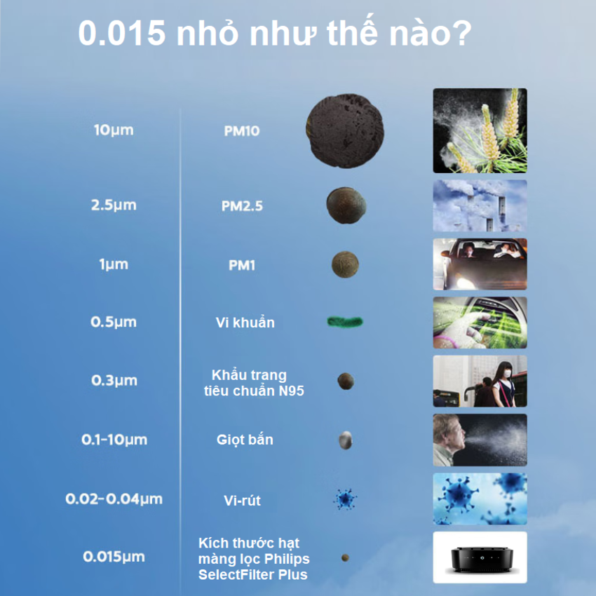 - Lọc các hạt mịn PM2.5 có hại chỉ trong vòng 6 phút