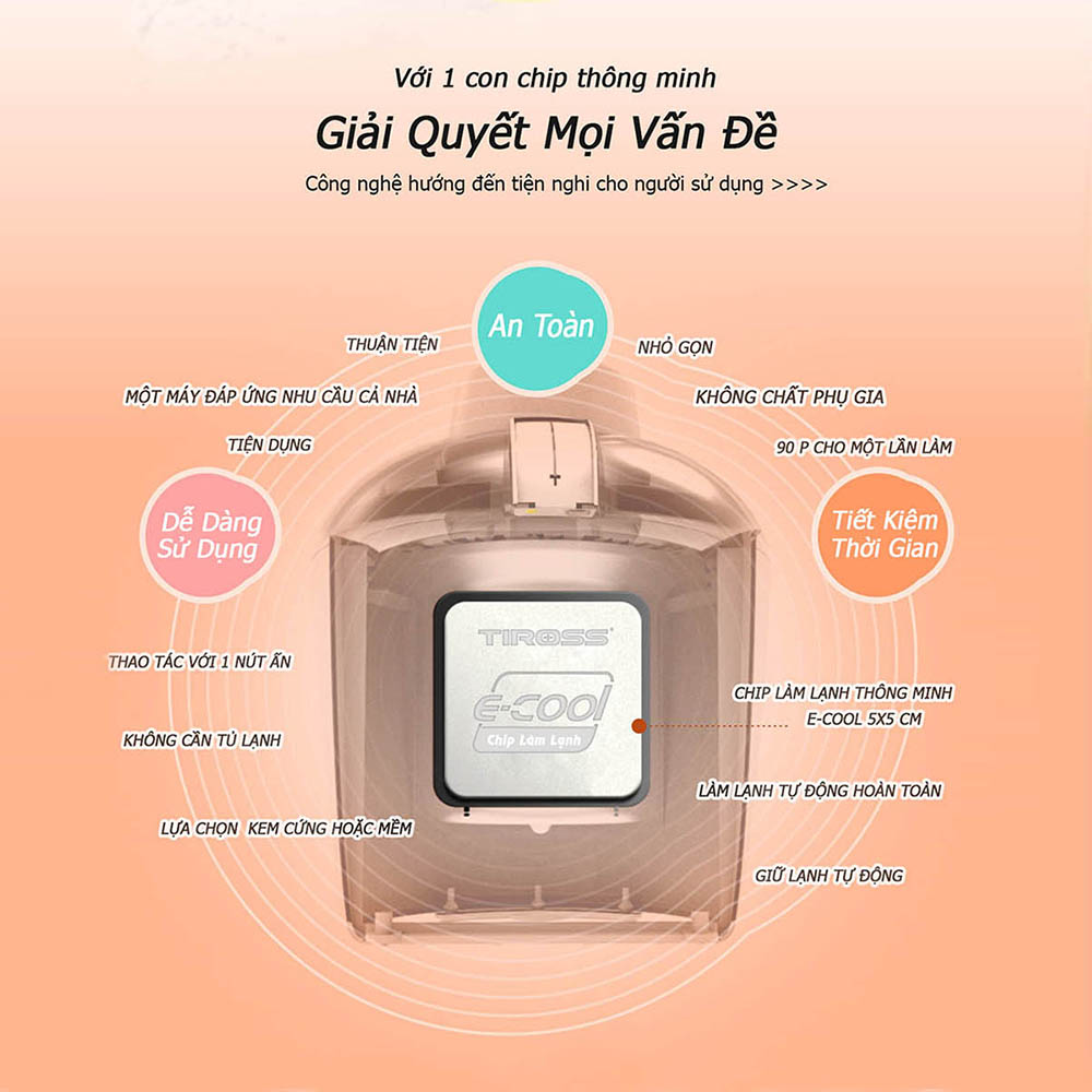 Ứng dụng công nghệ Ba Lan Máy làm kem tự động Tiross TS9090 có kiểu dáng nhỏ gọn, màu sắc đẹp mắt và sở hữu tính năng hiện đại, giúp bạn tự làm món kem thơm ngon,