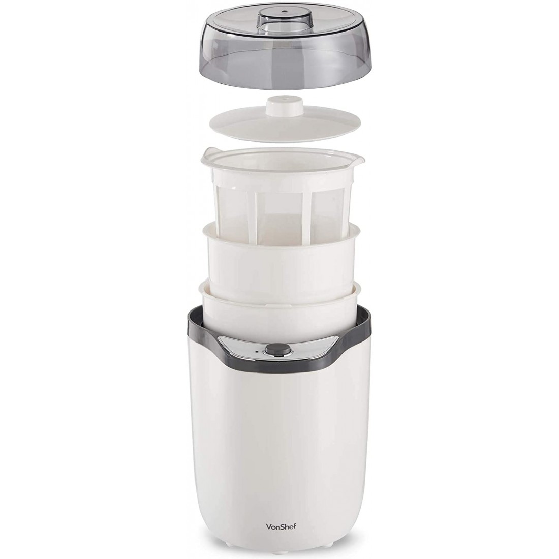 - DỄ DÀNG SỬ DỤNG - công tắc chức năng bật / tắt đơn giản và bình có thể tháo rời để vệ sinh dễ dàng. - Máy làm sữa chua tự động Vonshef nhờ có giỏ lọc tách nước nên rất tiện lợi, bạn sẽ được thưởng thức món sữa chua Hy Lạp bổ dưỡng hơn gấp nhiều lần sữa chua thường.