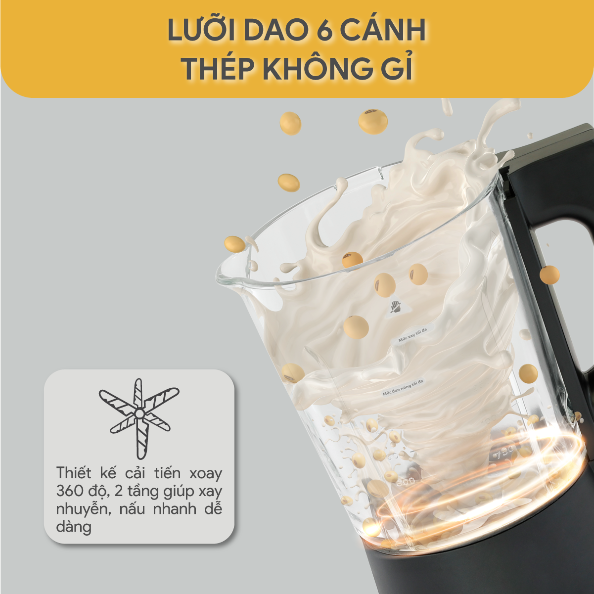 Đặc điểm nổi bật - Máy làm sữa hạt đa năng sử dụng để xay sinh tố, làm sữa hạt các loại, nấu cháo,... - Cối xay thủy tinh cường lực, dung tích 1.75 lít tiện dụng.