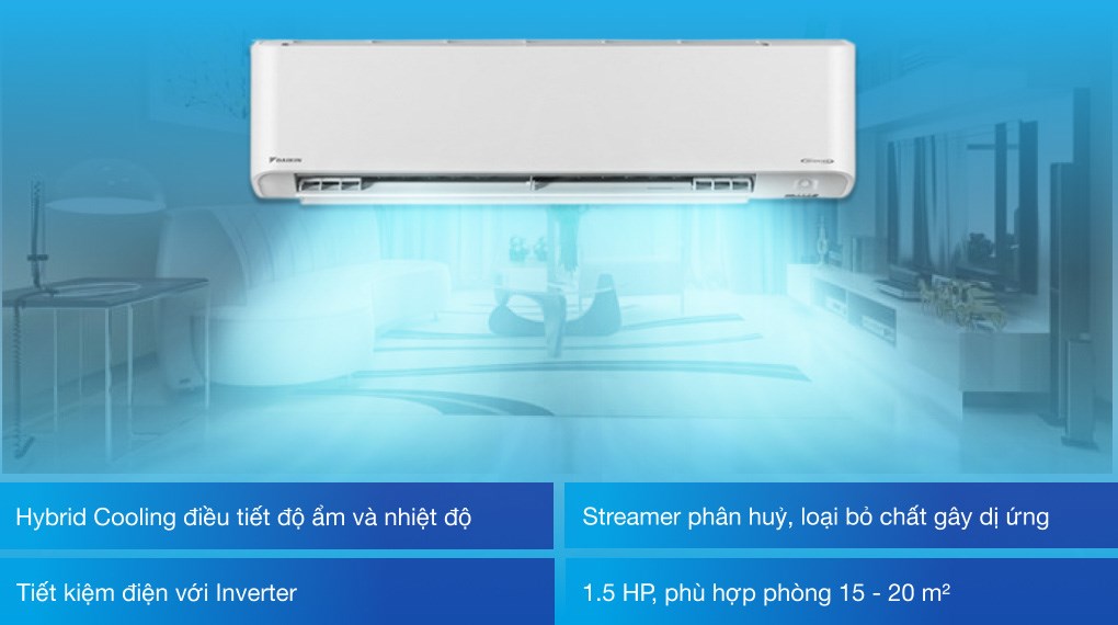 Máy lạnh Daikin này được trang bị công nghệ Hybrid Cooling với cảm biến đo độ ẩm và công nghệ kiểm soát khử ẩm trên dàn lạnh, giúp duy trì độ ẩm trong phòng luôn ở mức lý tưởng từ 55% - 65%.