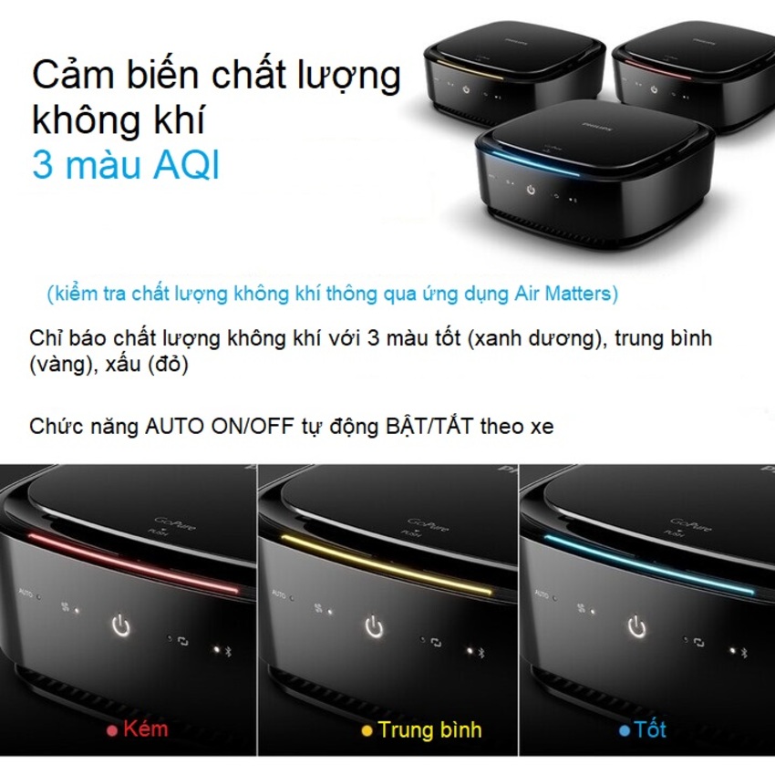 ✨Máy lọc không khí, khử mùi trong xe ô tô cao cấp Philips GP7101 cảm biến chất lượng không khí 3 màu AQI, công suất 3.5W, điều khiển từ xa qua App điện thoại - Hàng nhập khẩu