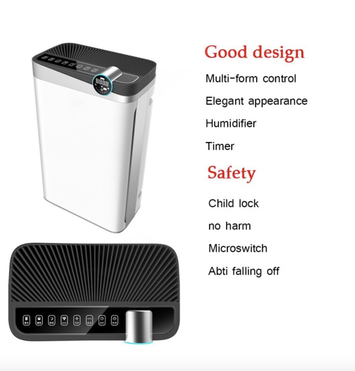 - Tạo ẩm Kiện hàng bao gồm Hệ thống nút + Điều khiển từ xa Các lợi thế của máy lọc không khí: 1.Thiết kế lọc không khí + ion hóa (2 trong 1) 2.Chất lượng: Màng lọc HEPA tạo ra chất lượng không khí hàng đầu 3.Hiệu quả: Động cơ AC cao cấp, 8 tốc độ, Yên tĩnh, Tiết kiệm năng lượng. 4.Độ yên tĩnh: 16dB~55dB, Không ảnh hưởng đến giấc ngủ của bạn 5.Cảm biến chất lượng không khí: Từ SHINYEI KAISHA. 6.An toàn: Chức năng khóa trẻ em 7.Kiểm định CE,CB,CQC,3C,Rohs,ERP,SGSCác màng lọc: Màng lọc Aluminum: Lọc sạch các hạt bụi có trọng lượng lớn, có thể làm sạch Màng lọc lớp phủ chất xúc tác lạnh : Xúc tác formaldehyde, benzene, TVOC Màng lọc kích hoạt cacbon hình tổ ong: Rapid adsorption of odor, decomposition of formaldehyde, benzene, ammonia, second-hand smoke. Hấp thụ nhanh và mạnh mùi, formaldehyd, benzen, amoniac, khói Màng lọc khử trùng: Loại bỏ các hạt bụi bay trong không khí, vi sinh vật Màng lọc HEPA chất lượng cao: Loại bỏ nấm mốc, bụi, chất gây dị ứng và vi khuẩn. Tia Sáng cực tím: Nhanh chóng diệt virut và vi khuẩn. Màng lọc ion âm: Cải thiện chất lượng không khí, sức khỏe con người Chức năng tạo ẩm: Máy có chức năng tạo ẩm, trong điều kiện thời tiết khô có thể bật chức năng tạo ẩm Các chức năng tạo ẩm: