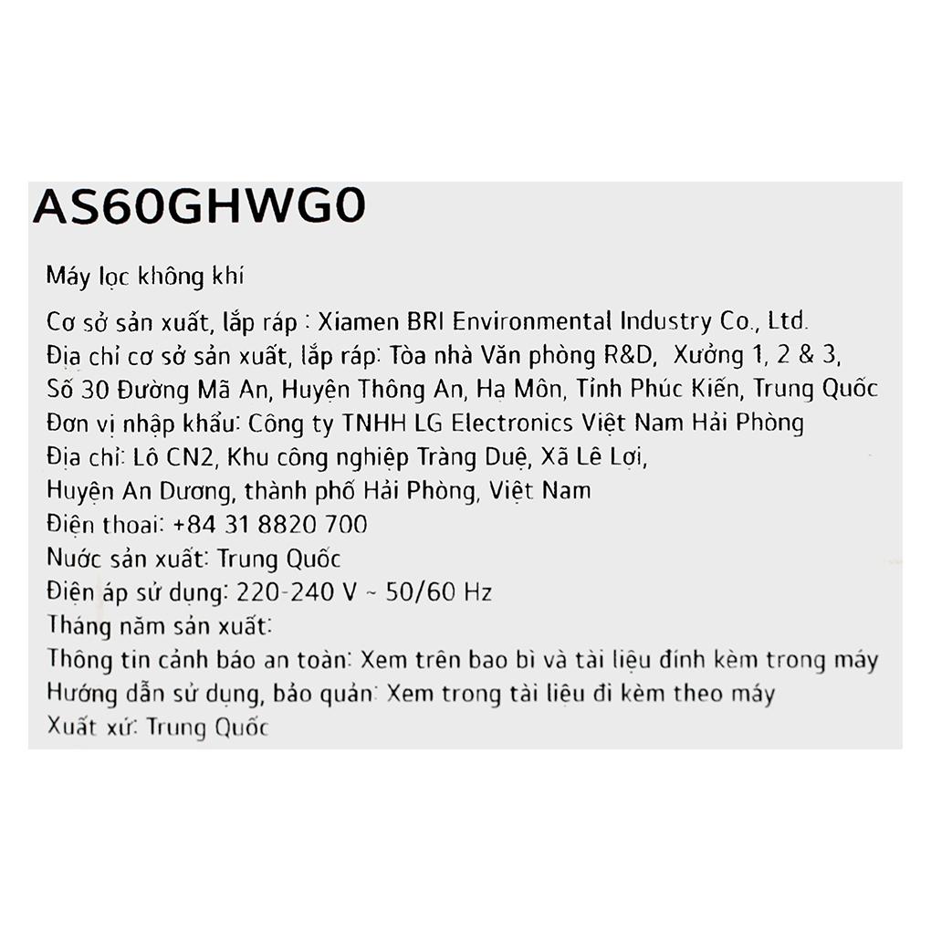 - Điều khiển từ xa thông qua ứng dụng LG ThinQ. Lưu ý ứng dụng chỉ hỗ trợ mạng wifi 2.4 GHz và dễ dàng cài đặt trên App Store và CH Play. Như vậy có thể thấy máy lọc không khí LG PuriCare AS60GHWG0 sở hữu nhiều tính năng hiện đại: cảm biến chất lượng không khí, công suất 41W lọc sạch hiệu quả trong phạm vi phòng 60m2 chắc hẳn sẽ là 1 lựa chọn đáng cân nhắc cho bạn và gia đình để mang lại bầu không khí trong lành cho căn nhà.