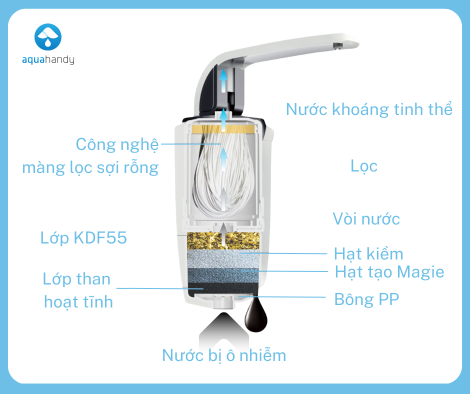 - Thiết kế lắp trực tiếp tại vòi nhỏ gọn, sang trọng cho gia đình hiện đại