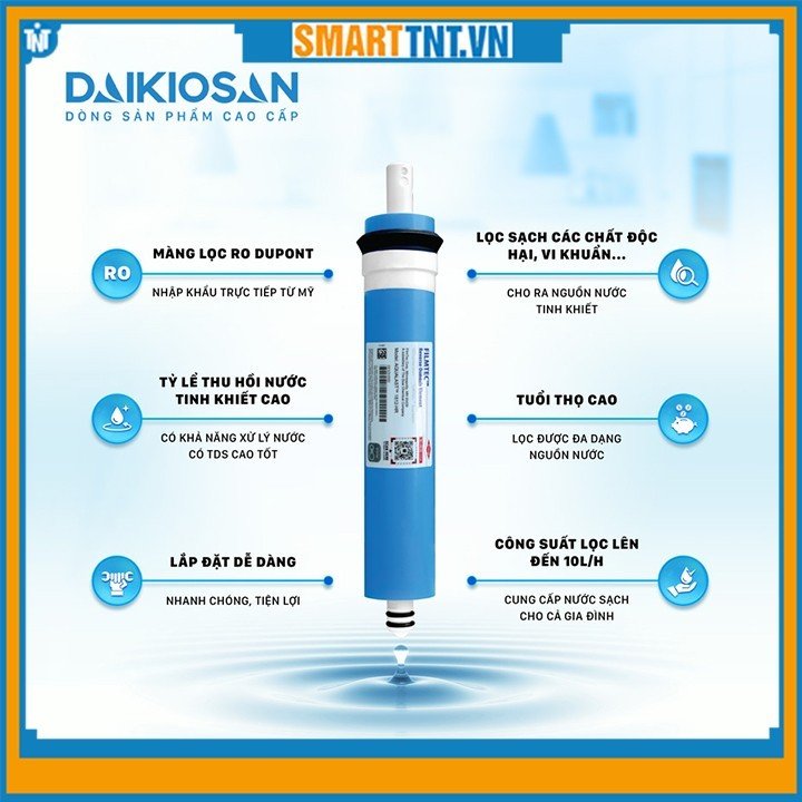 Màng lọc RO chuẩn Mỹ Công suất lọc 20 lít/h Tỷ lệ thu hồi nước tinh khiết lên đến 60% Tiết kiệm tới 71% lượng nước thải Bổ sung khoáng chất tốt qua 6 lõi